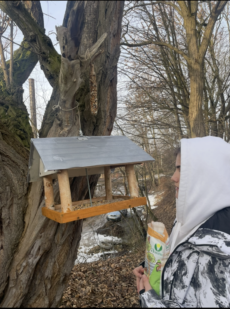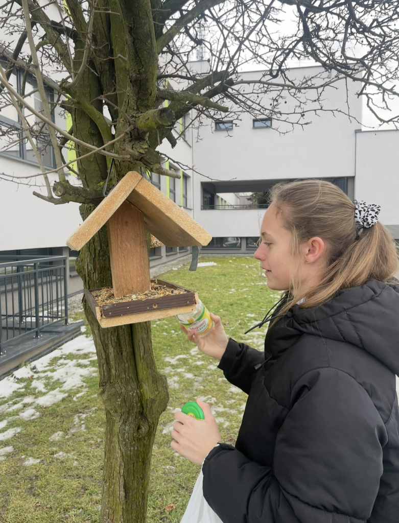 W ramach wolontariatu uczniowie naszej szkoły uczestniczą w cyklicznych zbiórkach darów dla zwierząt oraz dokarmiają ptaki. W tym roku uczniowie klasy 8d zanieśli kilka naszych karmników do pobliskiego przedszkola i wspólnie z przedszkolakami rozwiesili je na drzewach. Kilka karmników zawisło też wokół terenu naszej szkoły.